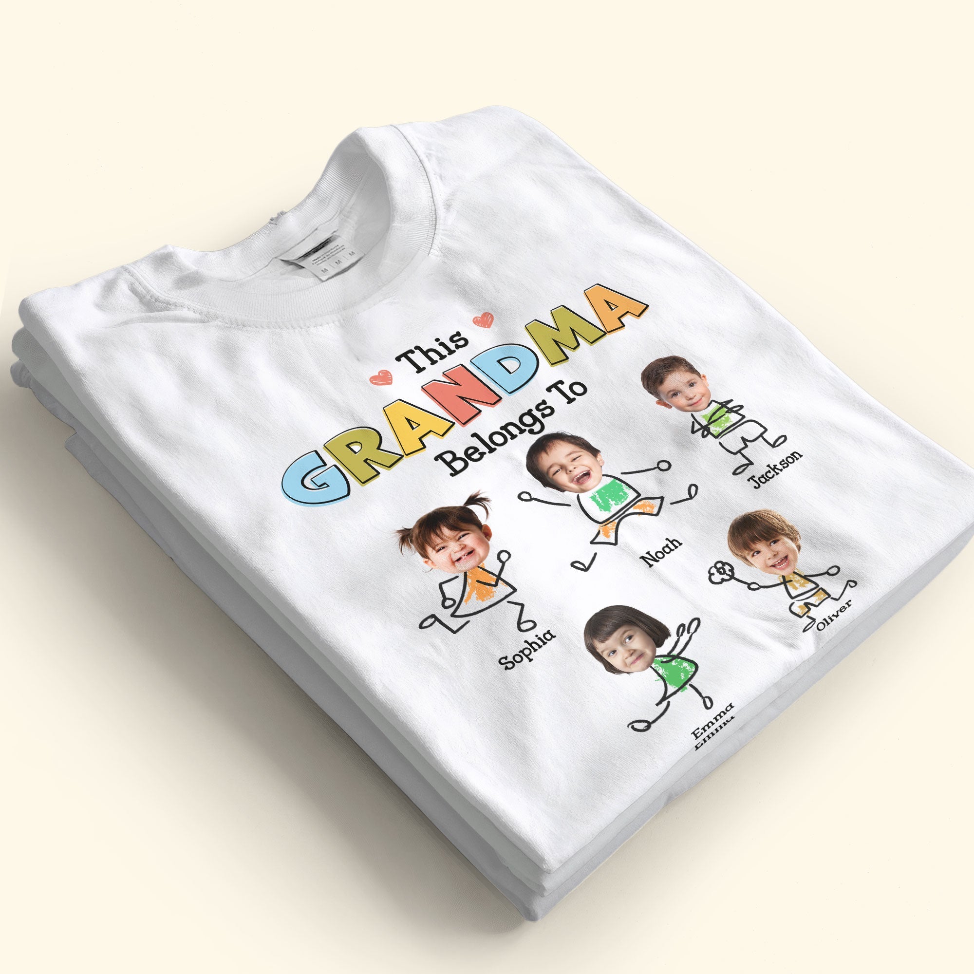 Embrace the joy of being a grandma with this adorable ‘This Grandma Belongs To’ t-shirt! Each playful stick figure represents a beloved grandchild, personalized with their name right beneath. This heartwarming shirt celebrates the unique bond between grandma and her little ones. With colorful letters that pop and sweet little hearts, it’s the perfect gift for any grandma who wears her title with pride. Whether she’s out on a family day or just relaxing at home, this shirt is sure to be a conversation starter and a treasure she’ll love to wear.”